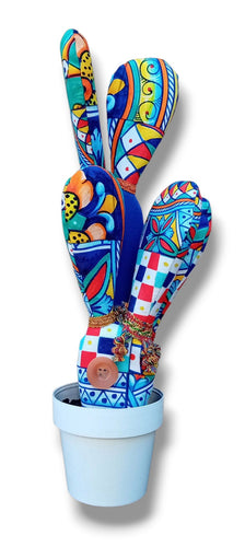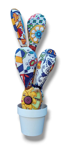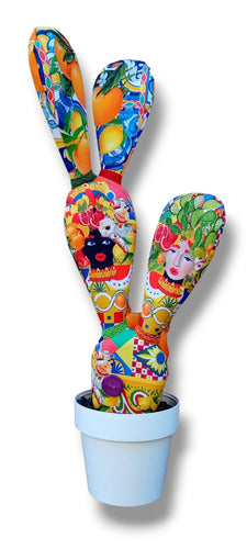 Dalla passione per i fichi d’India, ecco un complemento d’arredo eccentrico ed originale dai connotati siciliani e non solo, fichi d’India realizzati con poliuretano espanso, ricoperto da tessuti di svariati colori e motivi originali ed infine collocati in un vasetto con pomice lavica dell’Etna. Creatività e passione tutta Made in Sicily.