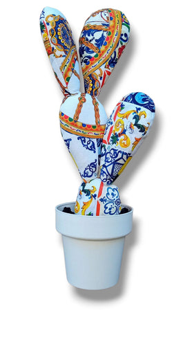 Dalla passione per i fichi d’India, ecco un complemento d’arredo eccentrico ed originale dai connotati siciliani e non solo, fichi d’India realizzati con poliuretano espanso, ricoperto da tessuti di svariati colori e motivi originali ed infine collocati in un vasetto con pomice lavica dell’Etna. Creatività e passione tutta Made in Sicily.