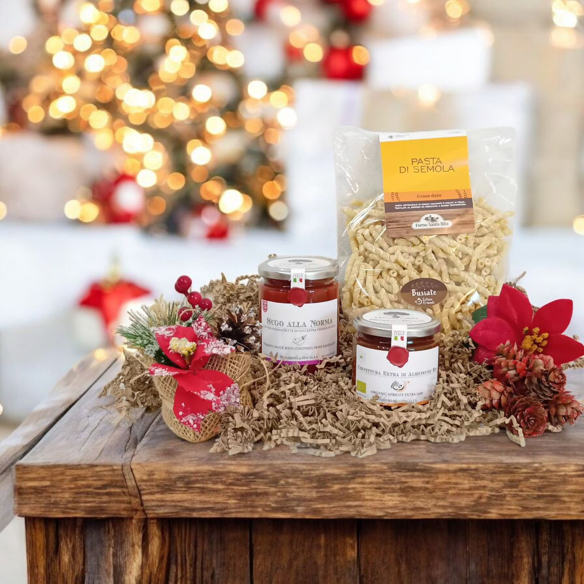 Questo pacco regalo contiene ben 3 prodotti enogastronomici Siciliani di prima qualità